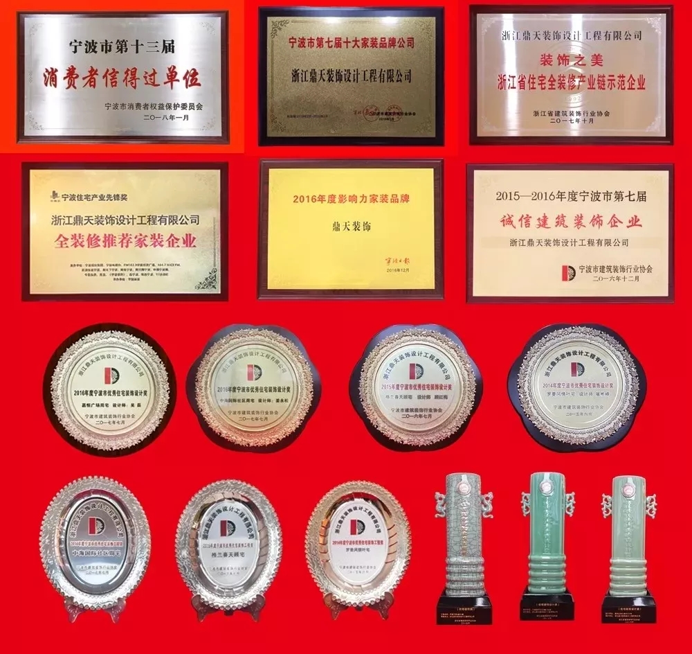 自鼎天裝飾1999年后成立以來,已連年獲得寧波市消費(fèi)者信得過單位、年度影響力家裝品牌、誠(chéng)信建筑裝飾企業(yè)、全裝修推薦裝飾企業(yè)等共計(jì)百余項(xiàng)獎(jiǎng)項(xiàng)。 ▲鼎天榮譽(yù)區(qū)展示一角 鼎天裝飾一直以來秉持“誠(chéng)實(shí)守信,客戶為先”的信念,已擁有深厚的品牌底蘊(yùn)!鼎天在設(shè)計(jì)、施工、服務(wù)上更是追求極致,讓其在消費(fèi)者心目中的形象與口碑極為良好。這讓鼎天裝飾成為裝飾行業(yè)的佼佼者,同時(shí)也獲得了消費(fèi)者跟同行業(yè)的高度認(rèn)可!